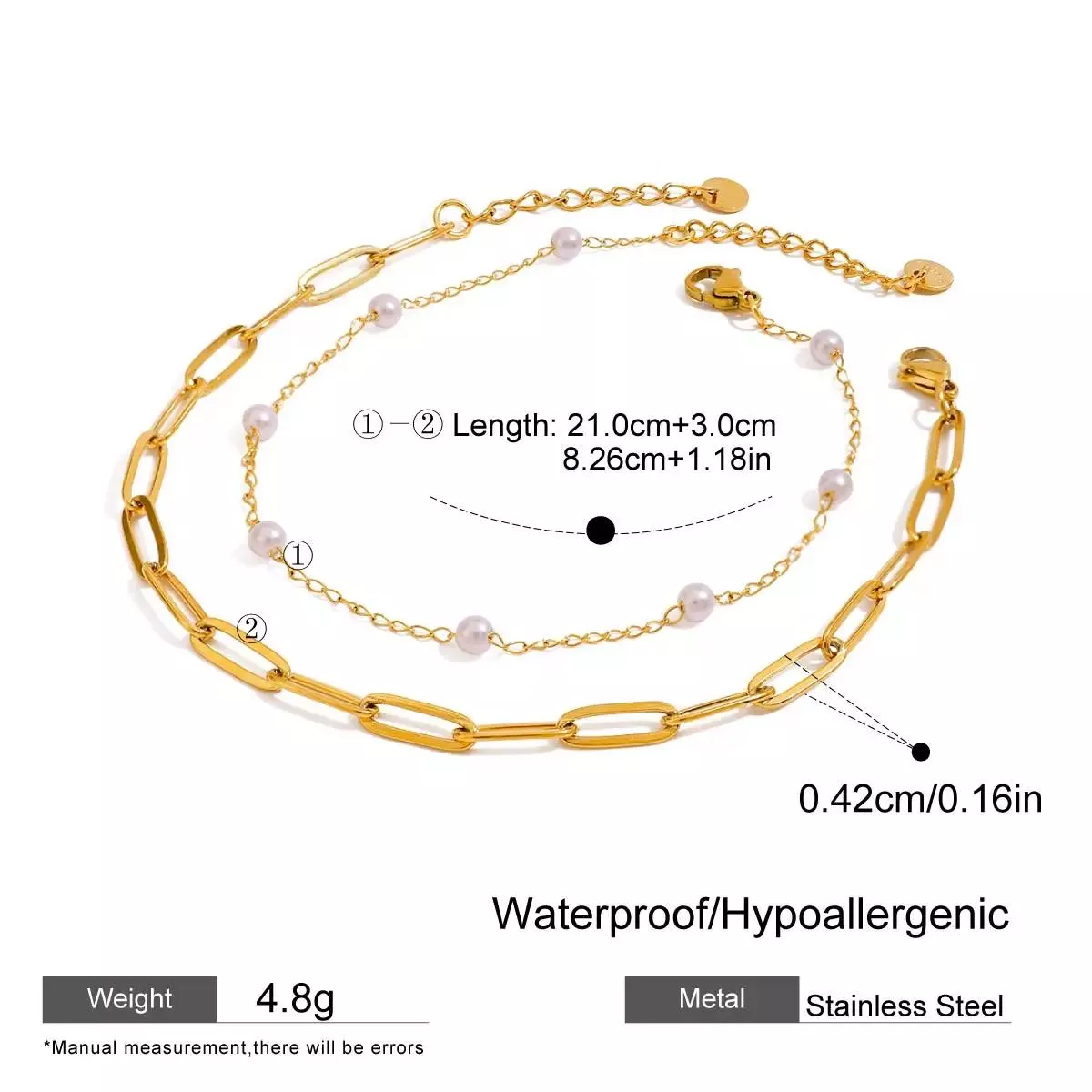 18K Gold-Plated Double-Layer Pearl Anklet – Waterproof & Hypoallergenic