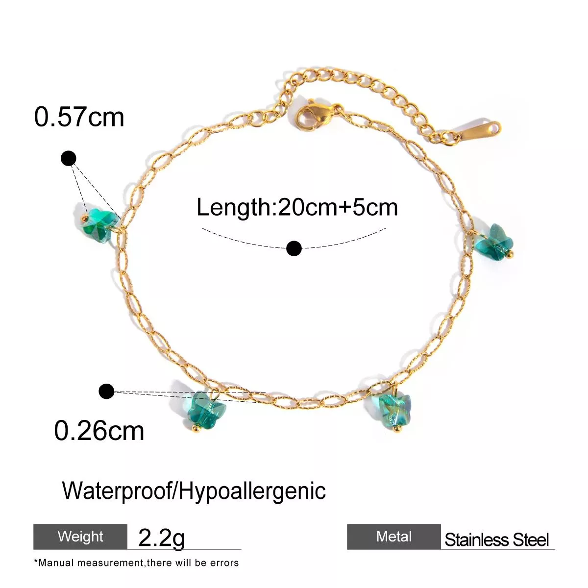 18K Gold Plated Green Butterfly Anklet – Waterproof Stainless Steel Jewelry