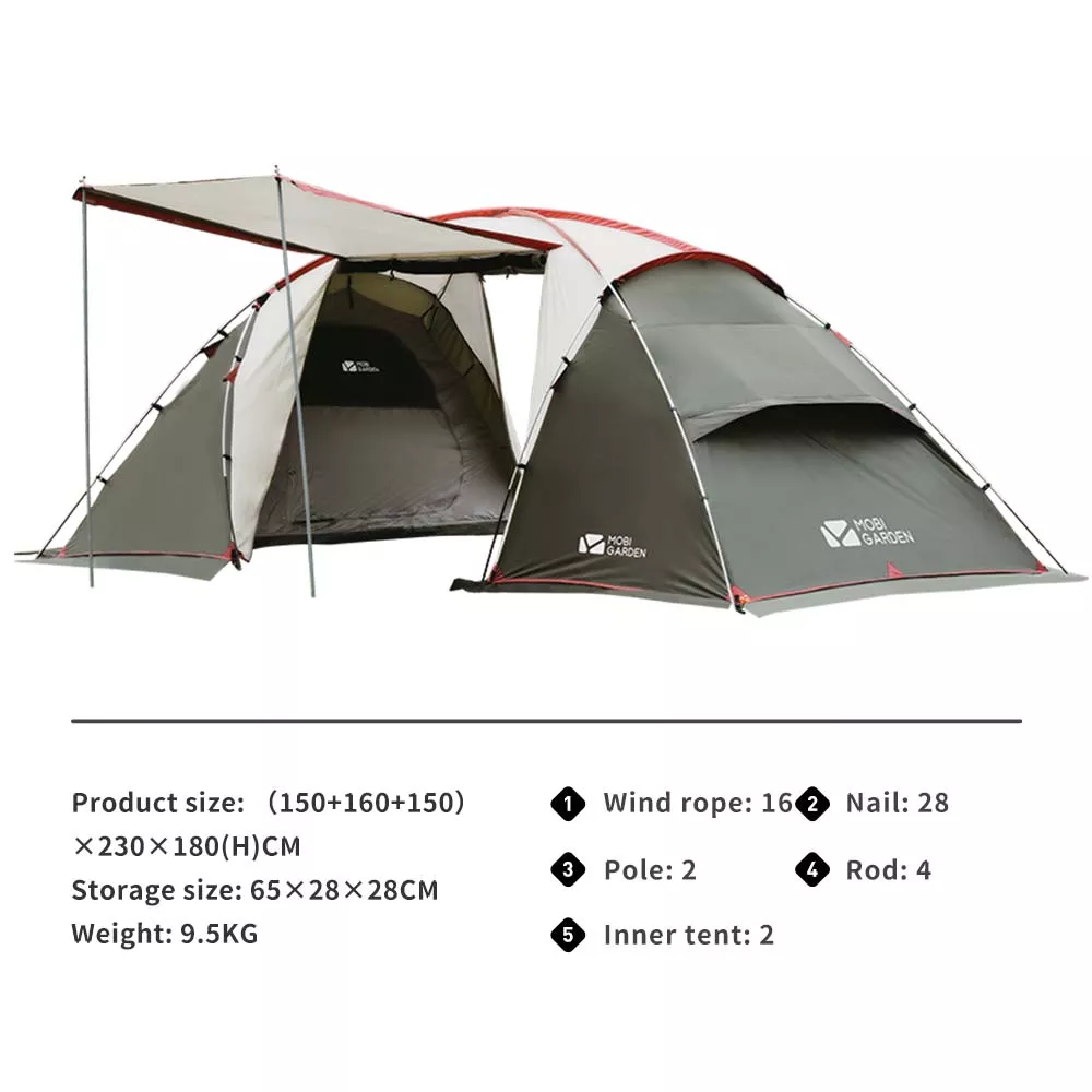 Discover your perfect outdoor retreat with our innovative two-bedroom tunnel tent designed to elevate every camping experience. Crafted from durable 600D Oxford fabric enhanced with reflective mylar, this tent is built to withstand the elements while keeping you cool and comfortable. The double-layer construction offers superior waterproof protection and sunshade capabilities, making it an ideal companion for family camping trips, backyard getaways, or festival adventures.