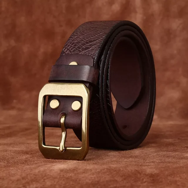 3.8CM Genuine Cowhide Leather Belt with Embossed Copper Buckle