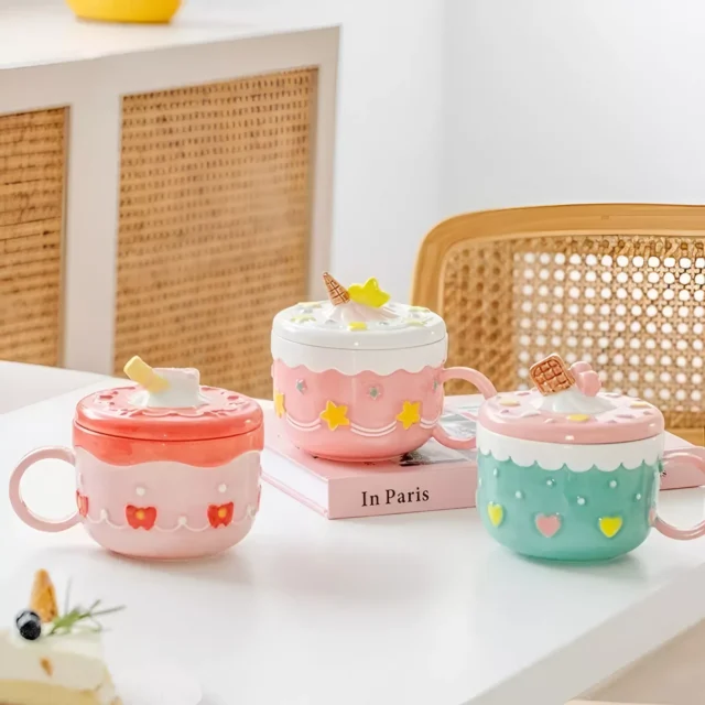 The mug is made from high-quality, eco-friendly ceramic that’s both durable and safe. The embossed cake design not only looks delightful but also adds a textured grip, making it easy and comfortable to hold. The matching ceramic lid helps keep your drink warm longer and doubles as a dust cover, making it ideal for busy desks or cozy mornings on the sofa.