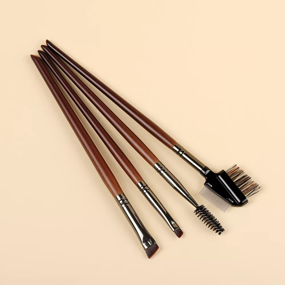 4PCS Eyebrow & Eyeliner Brush Set with Spoolie and Dual Comb