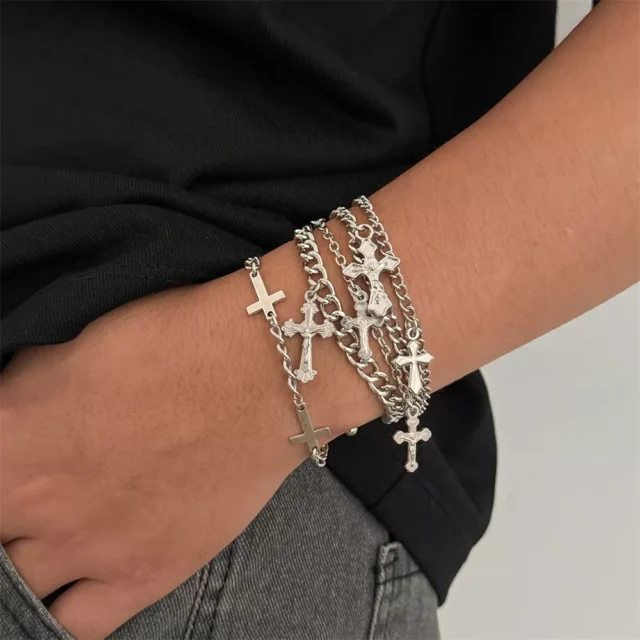 This 5Pcs Cross Pendant Wrist Bracelets Set is not just a piece of jewelry—it’s a statement. Its unique cross design adds an element of spirituality and coolness to any outfit. The chunky chain style is on-trend, making it ideal for those who love the combination of street fashion and elegance. Whether you’re pairing it with a laid-back t-shirt or a trendy dress, these bracelets will enhance your overall look with minimal effort. Plus, they’re perfect for gifting to a loved one—whether it’s for a birthday, anniversary, or just a special surprise, this bracelet set is sure to impress.