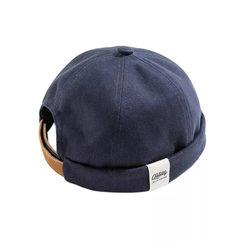 Adjustable Denim Skull Cap for Men – Casual Roll Cuff Dockworker Beanie Hat