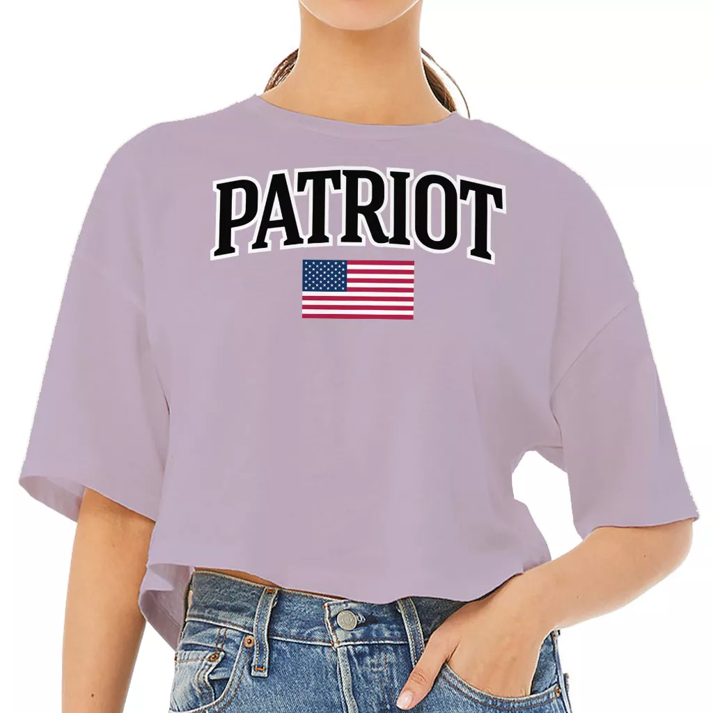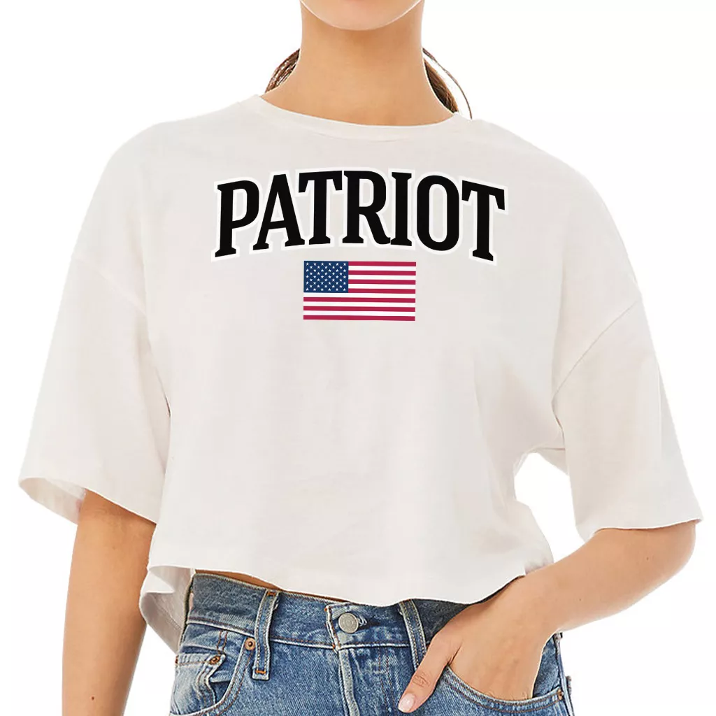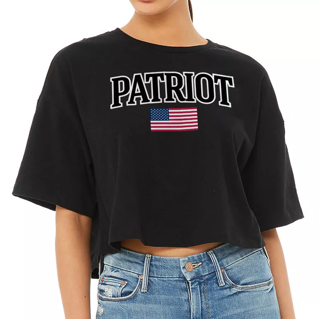 America Flag Patriot Cropped T-Shirt – USA Trendy Tee – Patriotic Women’s Basic T-Shirt