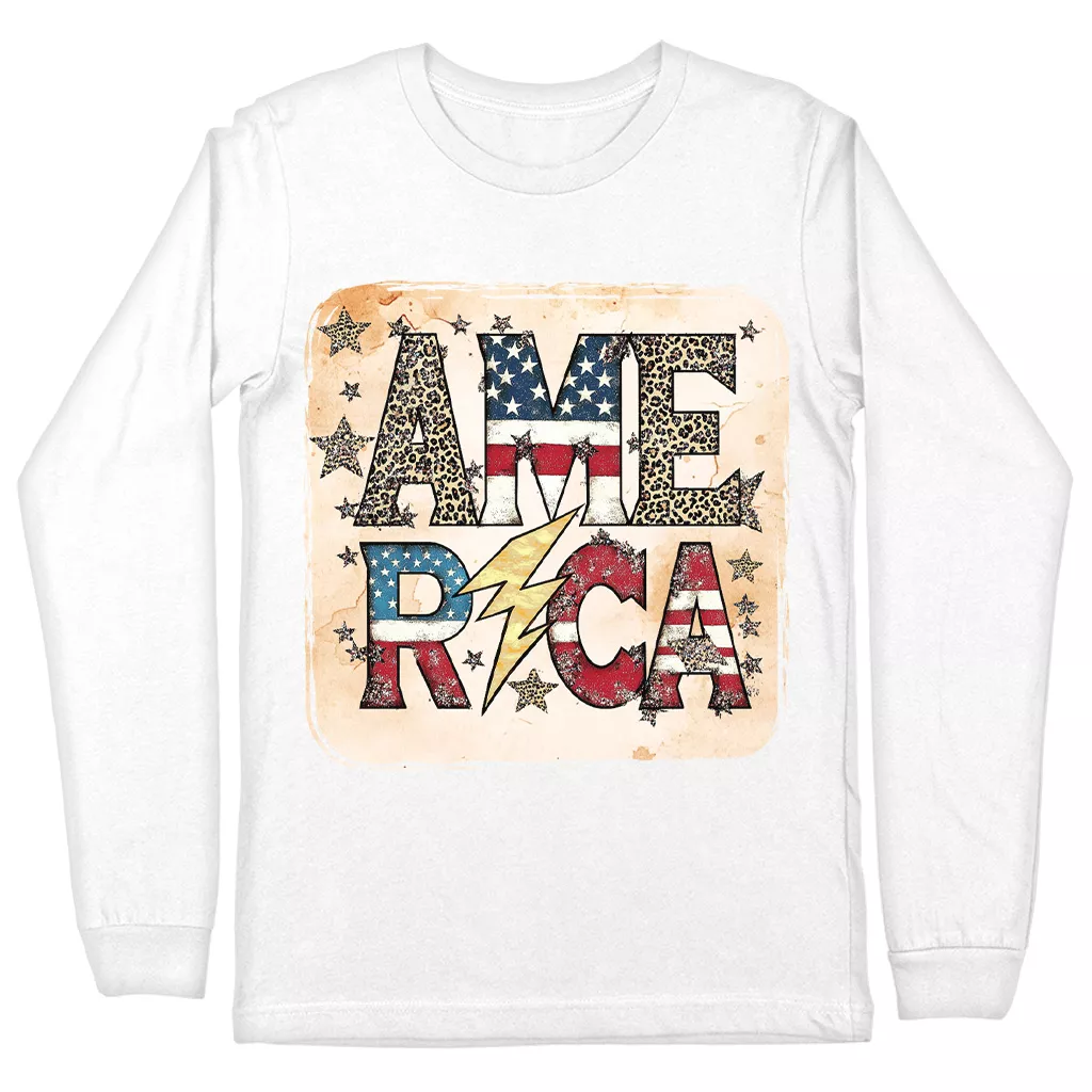 America Graphic Long Sleeve T-Shirt – Independence Day T-Shirt – Retro Design Basic Tee