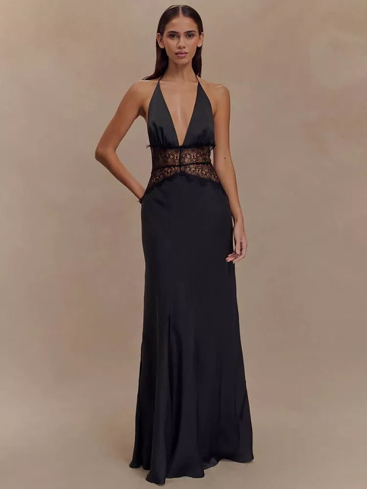 Backless Lace Halter Maxi Dress