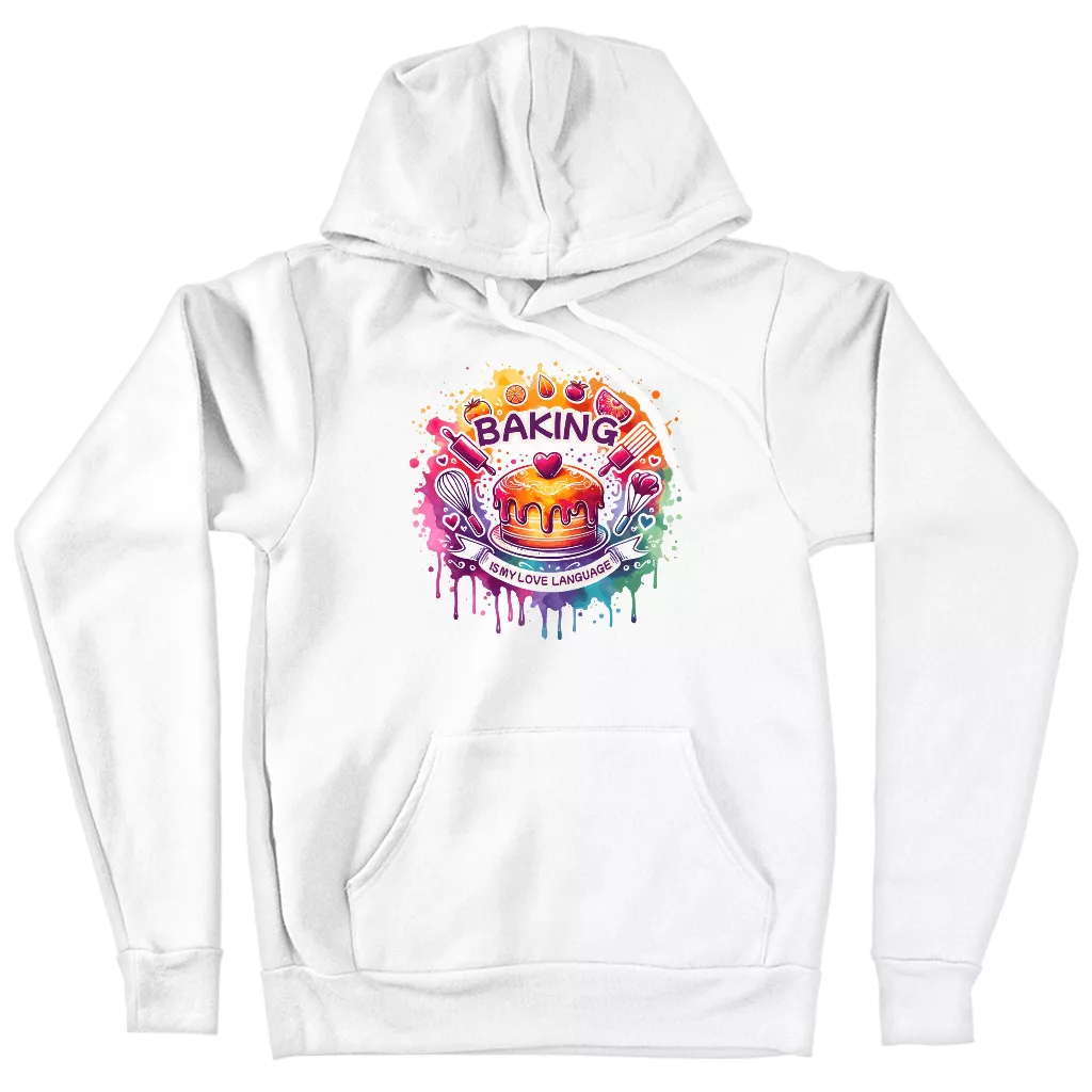 Baking Is My Love Language Hoodie – Kitchen Chef Hooded Sweatshirt – Colorful Graphic Unisex Hoodie