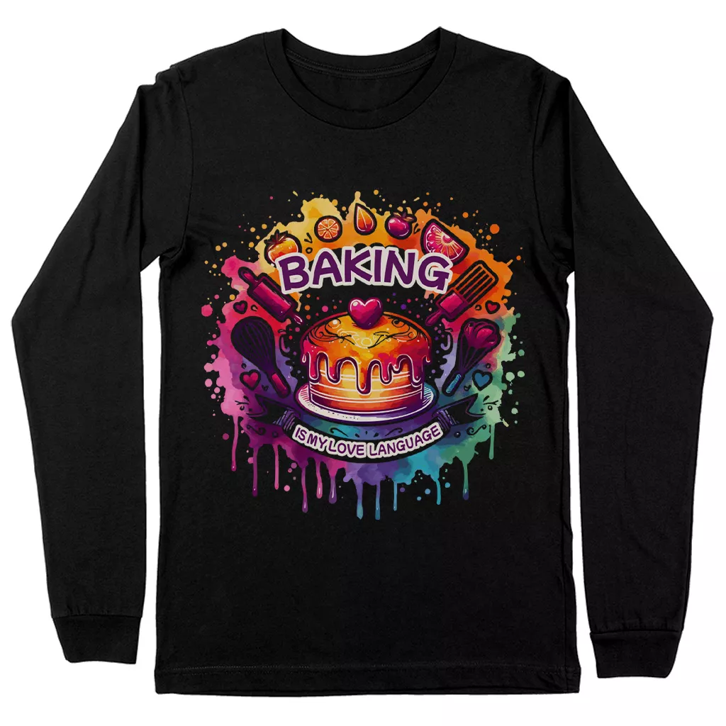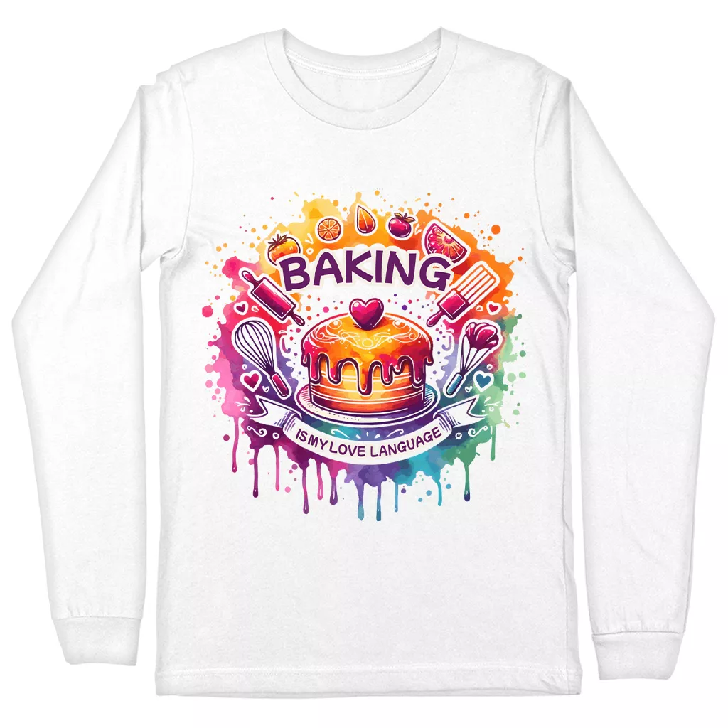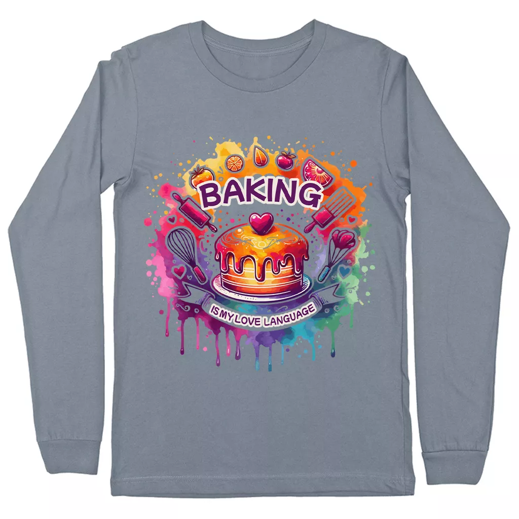 Baking Is My Love Language Long Sleeve T-Shirt – Colorful Graphic T-Shirt – Kitchen Chef Basic Tee