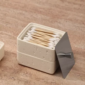 Modern Black Stripe Ceramic Bathroom Accessory Set – 4-Piece Countertop Organizer