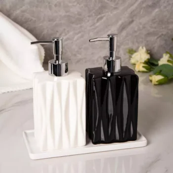 Elegant Black & White Ceramic Lotion and Soap Dispenser Bottle