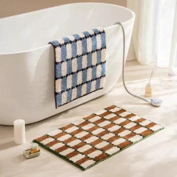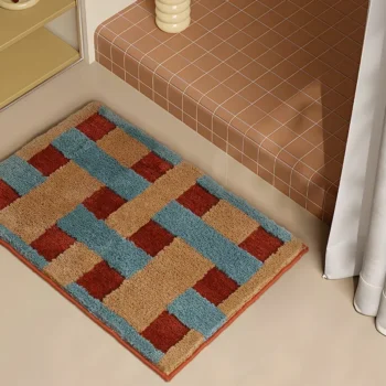 Cozy Plaid Tufted Floor Mat – Soft Bedroom & Bathroom Area Rug