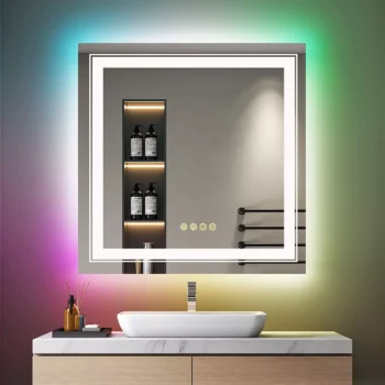 32 Inch LED Bathroom Mirror with RGB Backlit, Front Light, Anti-Fog & Memory