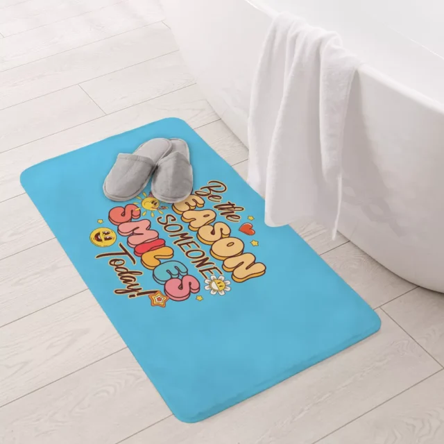 Be The Reason Someone Smiles Bath Mat features an anti-slip backing that ensures it stays firmly in place. The durable material won’t get damaged by humidity and creates a luxurious layer between you and the cold floor.