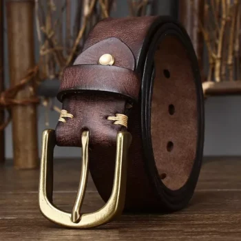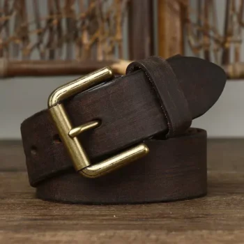 Men’s Genuine Leather Belt with Retro Brass Buckle