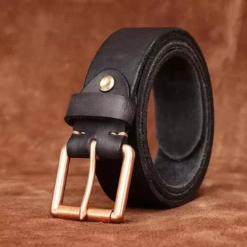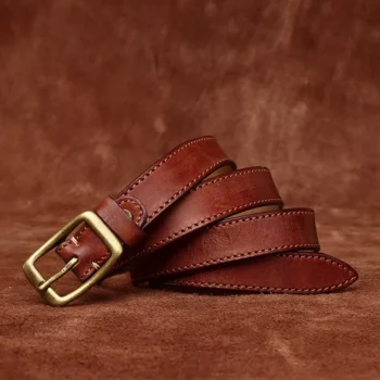 Genuine Leather Belt with Retro Copper Buckle – 1.65in Wide