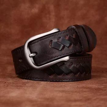 3.3CM Thick Cowhide Leather Braided Belt for Men