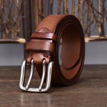 3.8CM Pure Cowhide Leather Belt for Men – Vintage Style