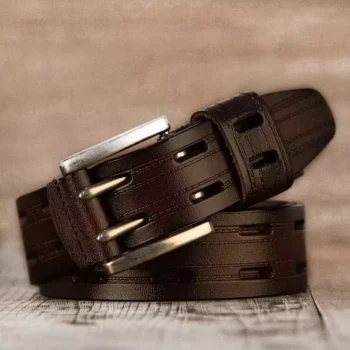 Mens Genuine Leather Belt with Double Pin Buckle