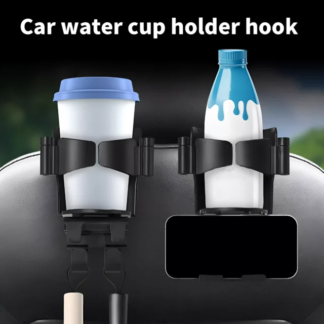 Crafted from durable ABS material, this headrest-mounted accessory offers strong grip, stability, and anti-slip performance—even on bumpy roads. The foldable phone holder provides a secure four-corner foundation, allowing one-hand operation and adjustable viewing angles for hassle-free entertainment or navigation. The integrated hooks are designed to hold bags, jackets, or essentials, while the compact cup holder keeps your drink steady within easy reach.