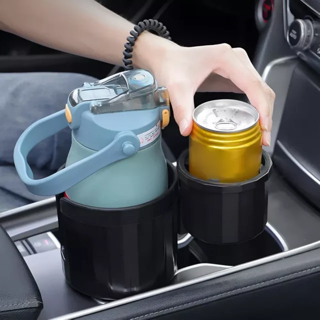• Improved Organization: This cup holder features a double design, allowing you to securely hold two cups or bottles at once. Ideal for families or anyone who needs extra storage space in their car.