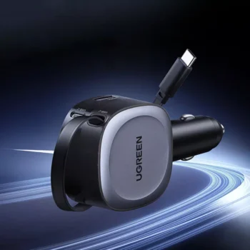 USB-C Car Charger 145W with Retractable Cable & Fast Charging