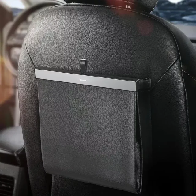 Transform your car’s backseat into a clutter-free zone with this sleek and practical car seat back organizer. Crafted from durable PU leather and sturdy aluminum alloy, this organizer adds a touch of elegance while offering ample space to store your essentials. Whether you’re running errands, on a road trip, or commuting, this organizer keeps everything from snacks to gadgets, and even trash, neatly within reach.
