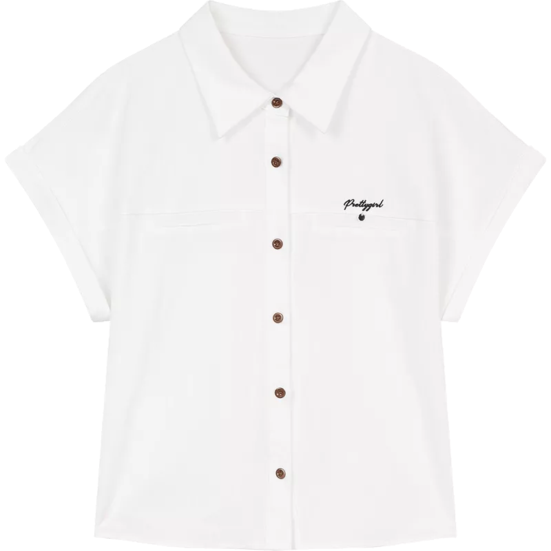 Chic Embroidered Lapel Short Sleeve Shirt for Women – Loose Fit Summer Style