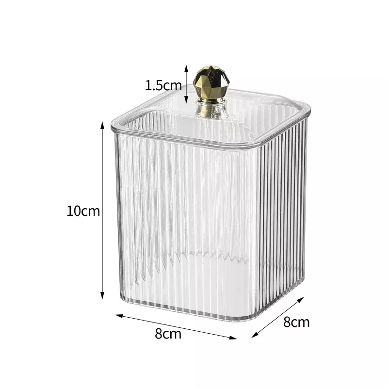 Our clear acrylic qtip holder combines elegance with practicality. The transparent design allows you to easily see your stored items, while the removable lid ensures quick access. The wide mouth of the canister makes it simple to retrieve your bathroom necessities and accessories. Perfect for your powder room, bathroom vanity, makeup table, or craft room, this organizer adds a touch of sophistication to any space.