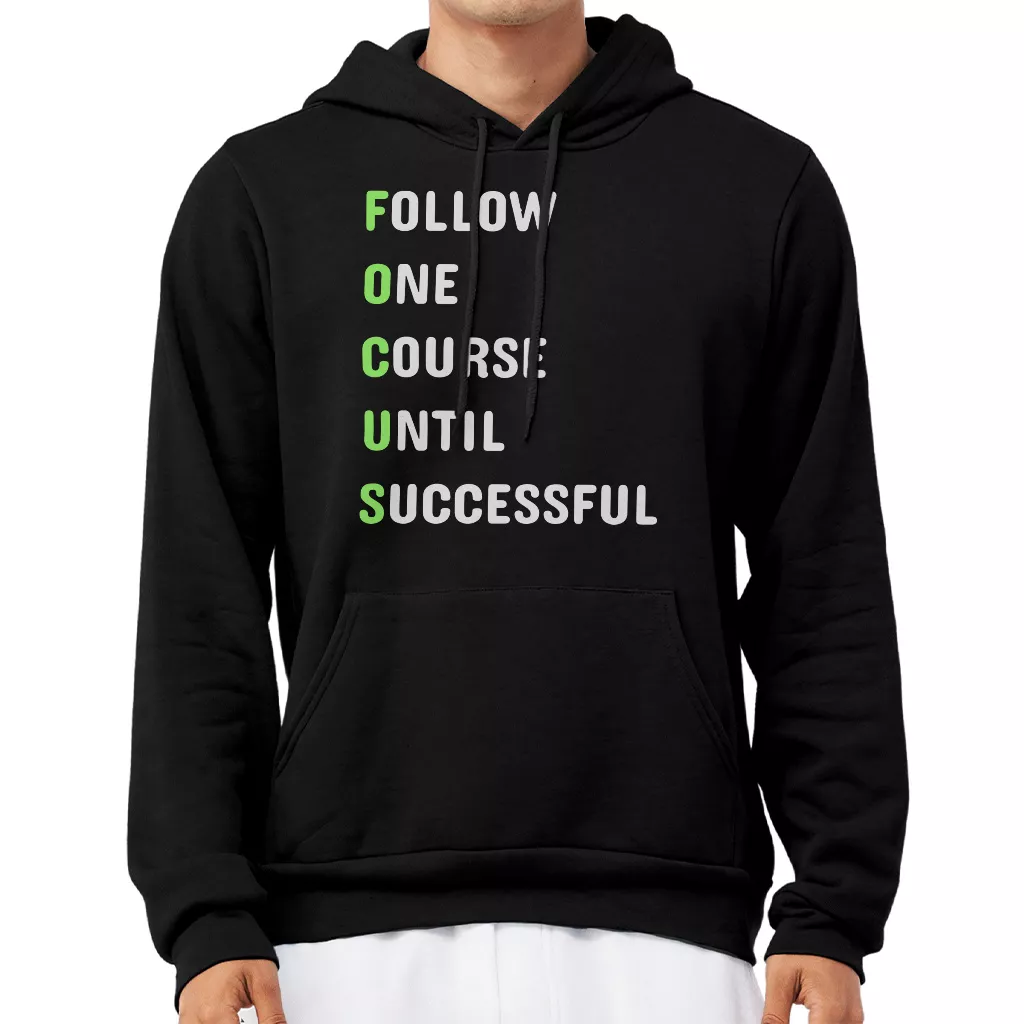 Focus Word Art Hoodie – Success Mindset Hooded Sweatshirt – Motivational Quote Unisex Hoodie