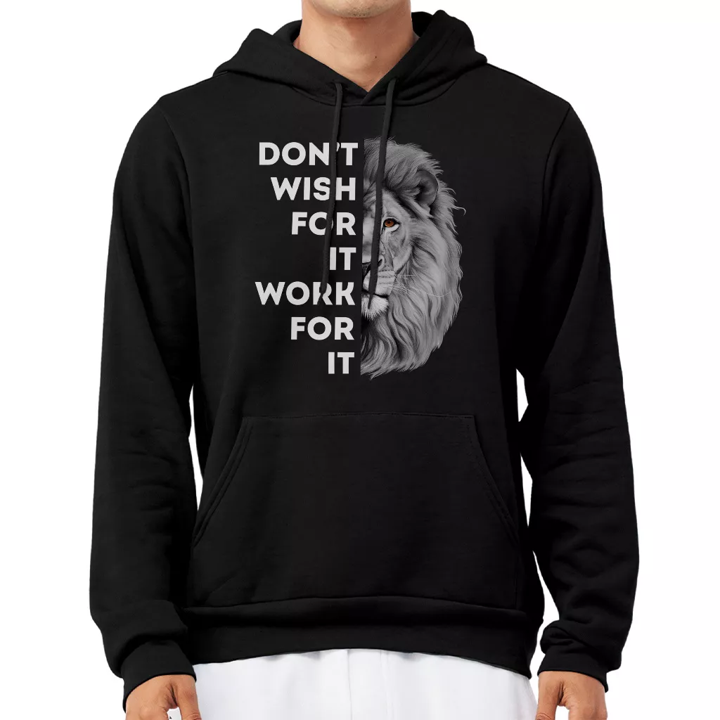 Don’t Wish for It Work for It Hoodie – Work Hard Quote Hooded Sweatshirt – Lion Unisex Hoodie
