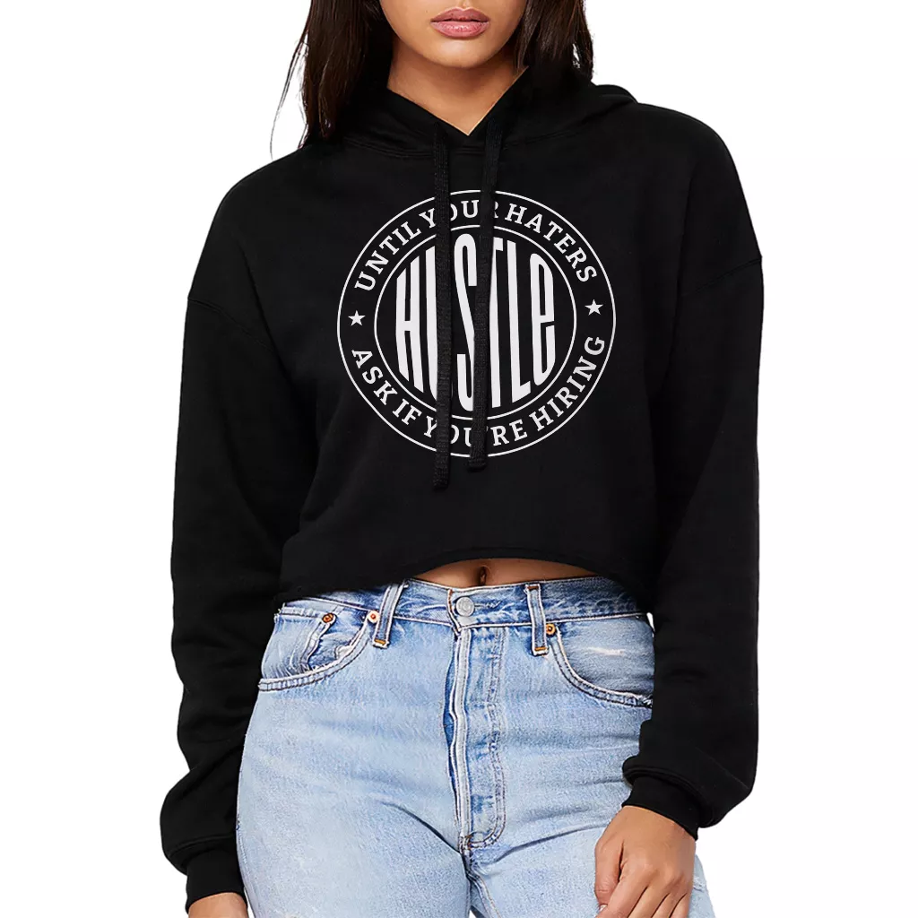 Hustle Until Your Haters Ask If You’re Hiring Women’s Cropped Hoodie – Hustle and Grind Hooded Sweatshirt – Funny Super Crop Top Hoodies