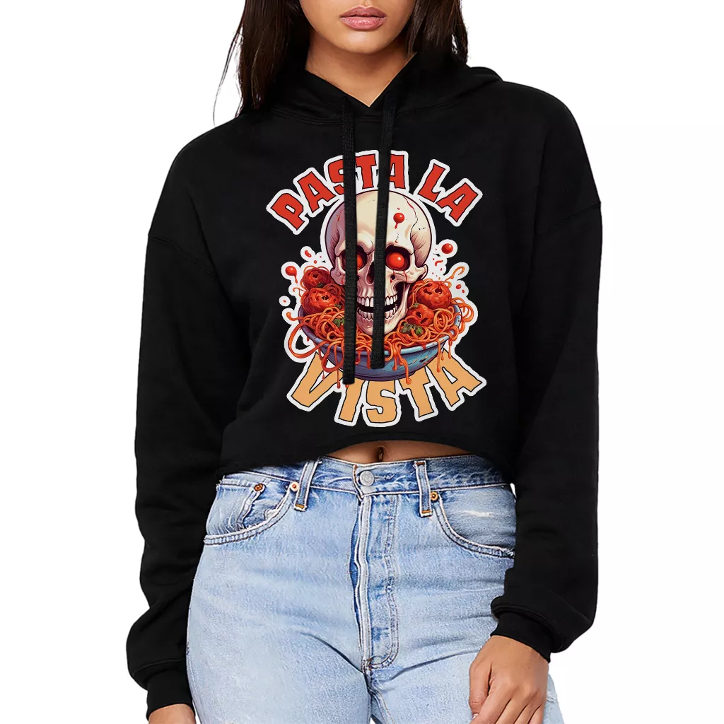 Pasta La Vista Women’s Cropped Hoodie – Funny Foodie Hooded Sweatshirt – Food Pun Super Crop Top Hoodies