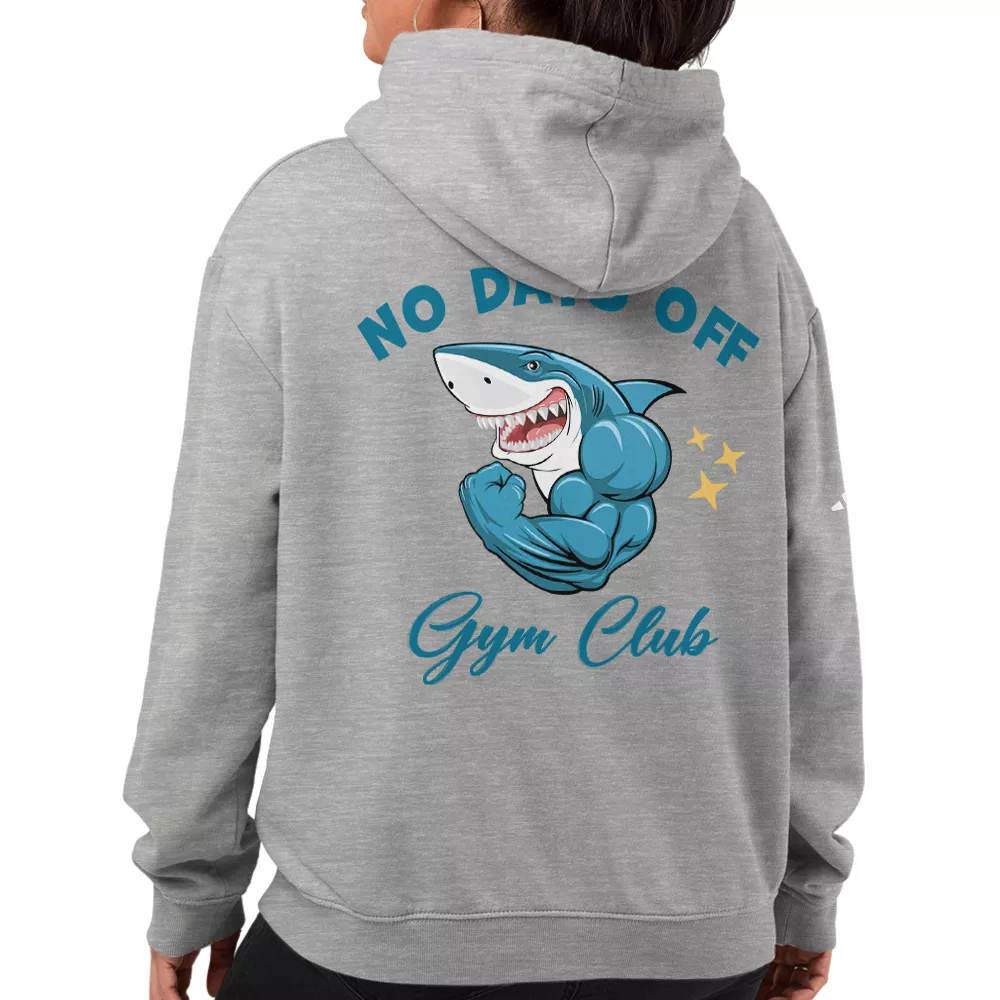 No Days Off adidas Hoodie – Muscular Shark Unisex Fleece Hoodie – Fitness Motivation Hooded Sweatshirt