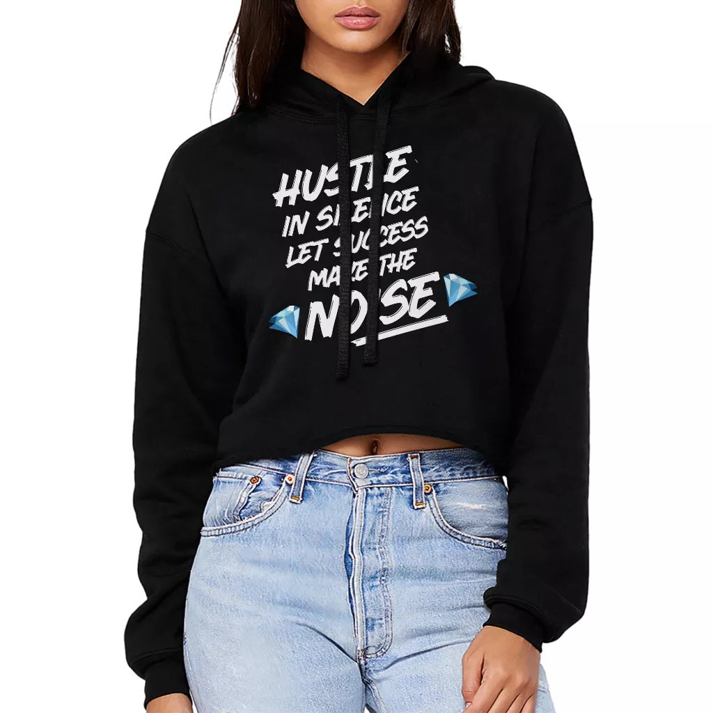 Hustle In Silence Let Success Make The Noise Women’s Cropped Hoodie – Hustle Hooded Sweatshirt – Motivational Super Crop Top Hoodies