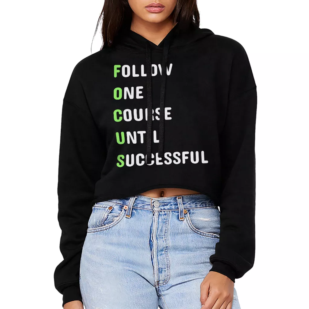 Focus Word Art Women’s Cropped Hoodie – Success Mindset Hooded Sweatshirt – Motivational Quote Super Crop Top Hoodies
