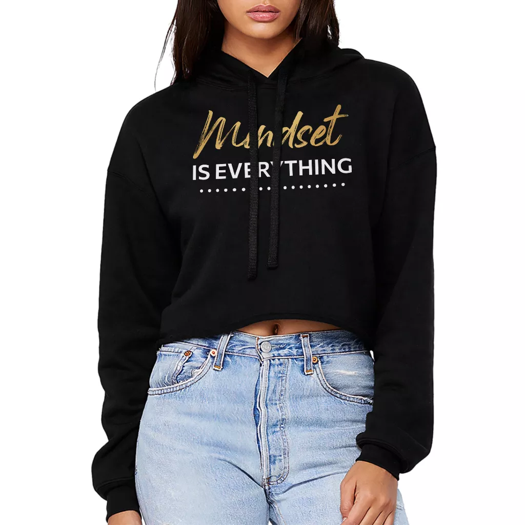 Mindset Is Everything Women’s Cropped Hoodie – Inspirational Hooded Sweatshirt – Positive Graphic Super Crop Top Hoodies