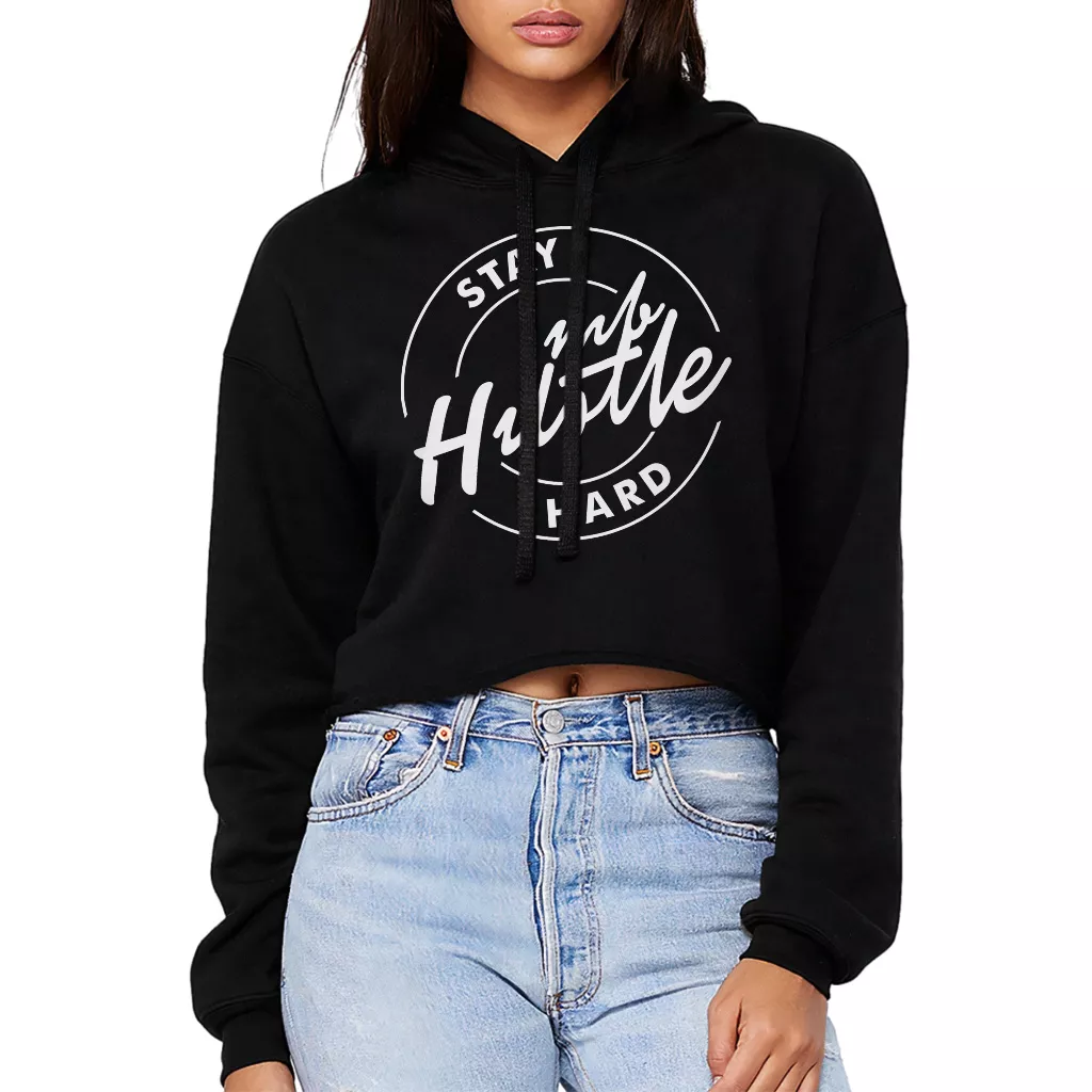 Stay Humble Hustle Hard Women’s Cropped Hoodie – Hustler Hooded Sweatshirt – Entrepreneur Quote Super Crop Top Hoodies