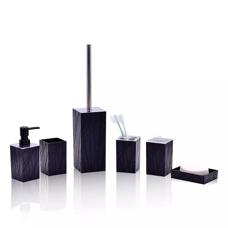 • Complete 6-Piece Set: This set includes all the essentials: a toilet brush, soap dispenser, mouthwash cup, toothbrush holder, soap dish, and cotton swab box, all designed to complement each other for a cohesive look.