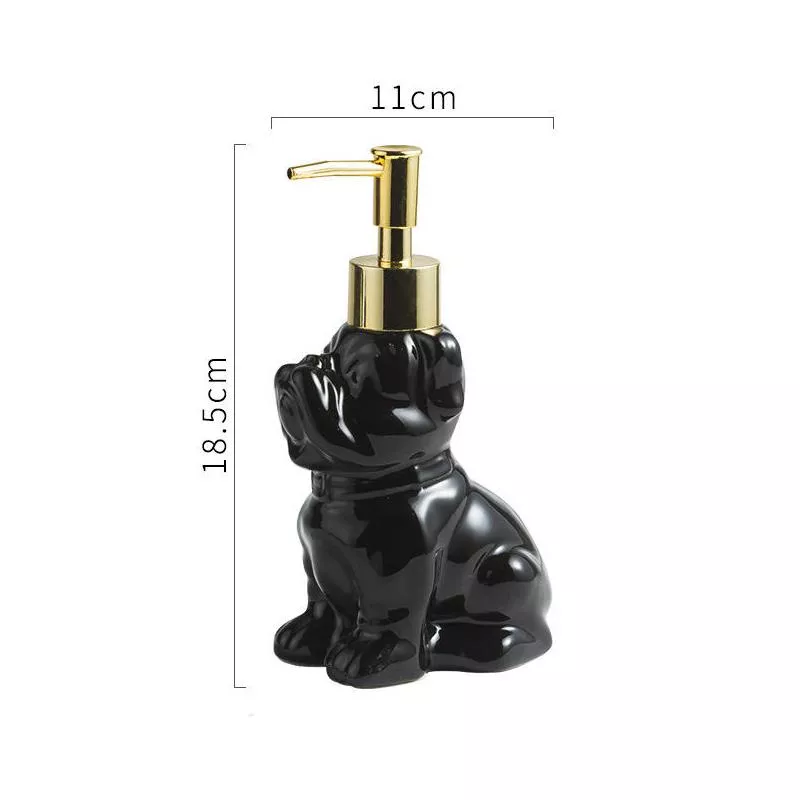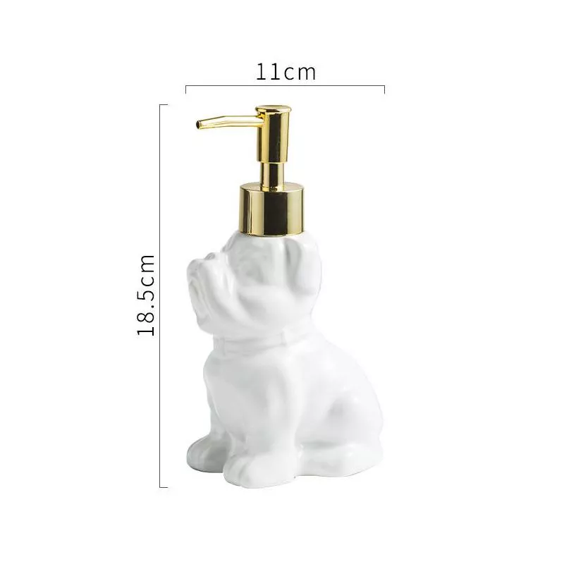 Creative Dog-Shaped Ceramic Soap Dispenser. This unique and stylish accessory not only serves a practical purpose but also adds a whimsical touch to your space. Perfect for holding shampoo, shower gel, or hand sanitizer, this luxurious soap dispenser combines functionality with delightful design to brighten up your daily routine.