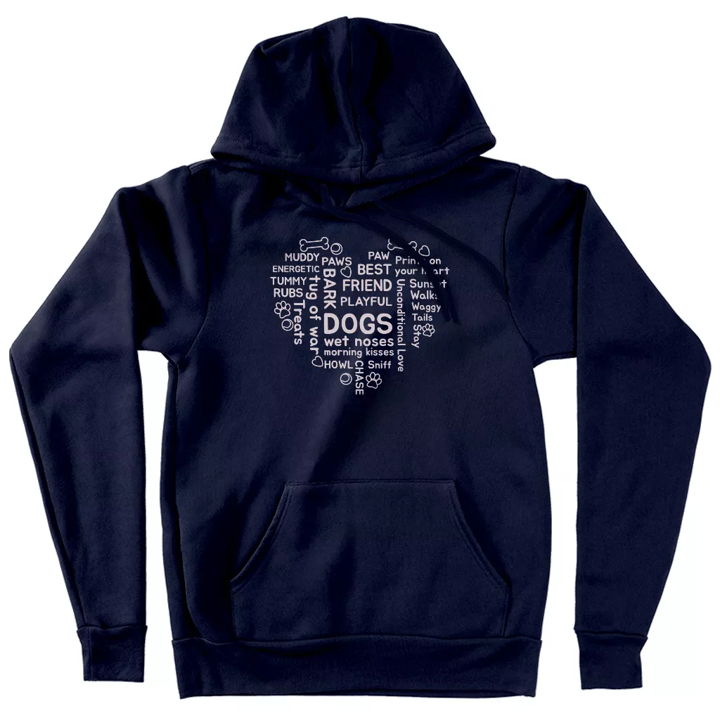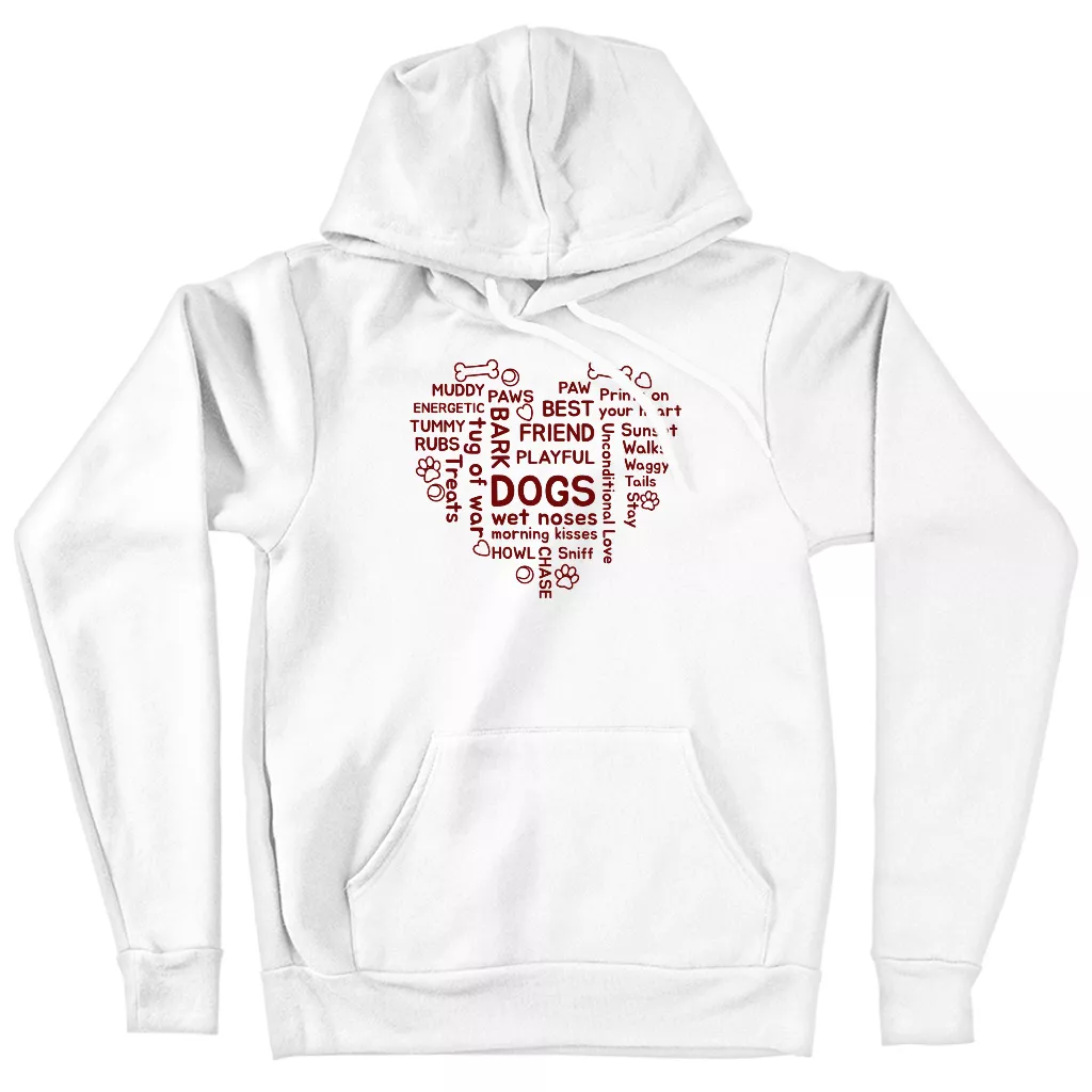 Dogs Words in Heart Hoodie – Dog Owner Hooded Sweatshirt – Gift for Dog Parent Unisex Hoodie