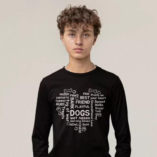 Dogs Words in Heart Long Sleeve T-Shirt – Dog Owner T-Shirt – Gift for Dog Parent Basic Tee