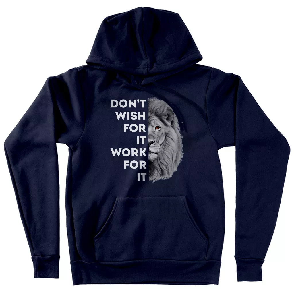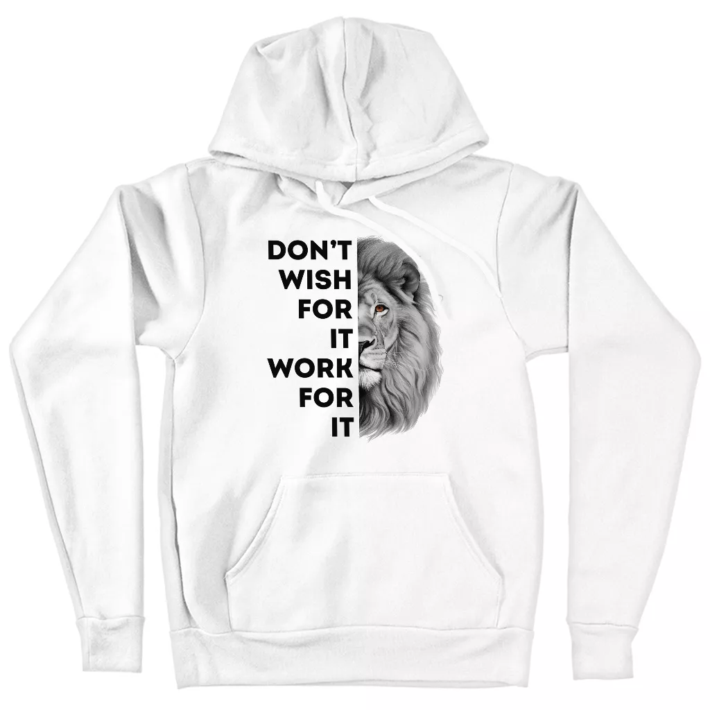 Don’t Wish for It Work for It Hoodie – Work Hard Quote Hooded Sweatshirt – Lion Unisex Hoodie