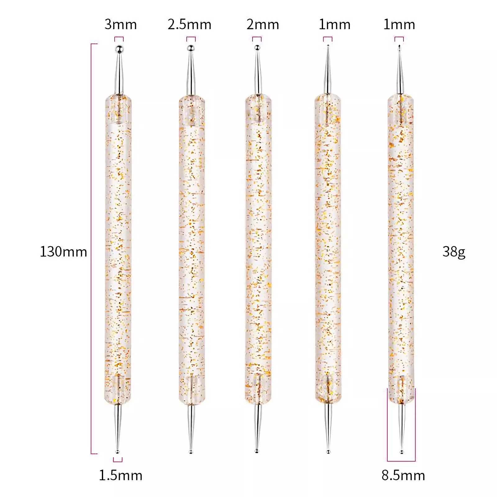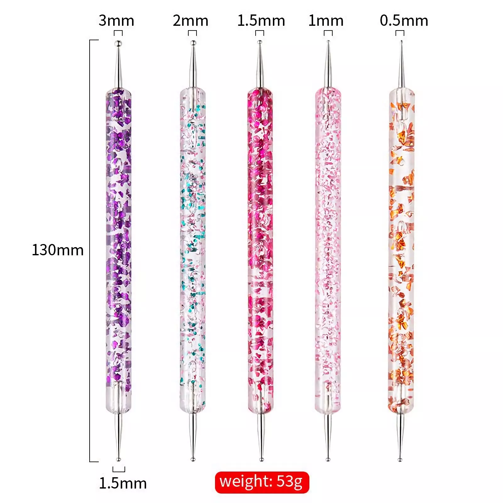 Transform your nail art game with our 5Pcs Dual-Ended DIY Nail Art Dotting Pen Set. Whether you’re a professional nail artist or an enthusiastic DIYer, these versatile tools are perfect for adding intricate designs and beautiful details to your manicures. Featuring acrylic sequin handles and dual-ended tips, these dotting pens provide precision and creativity in every stroke.