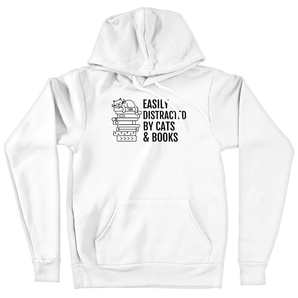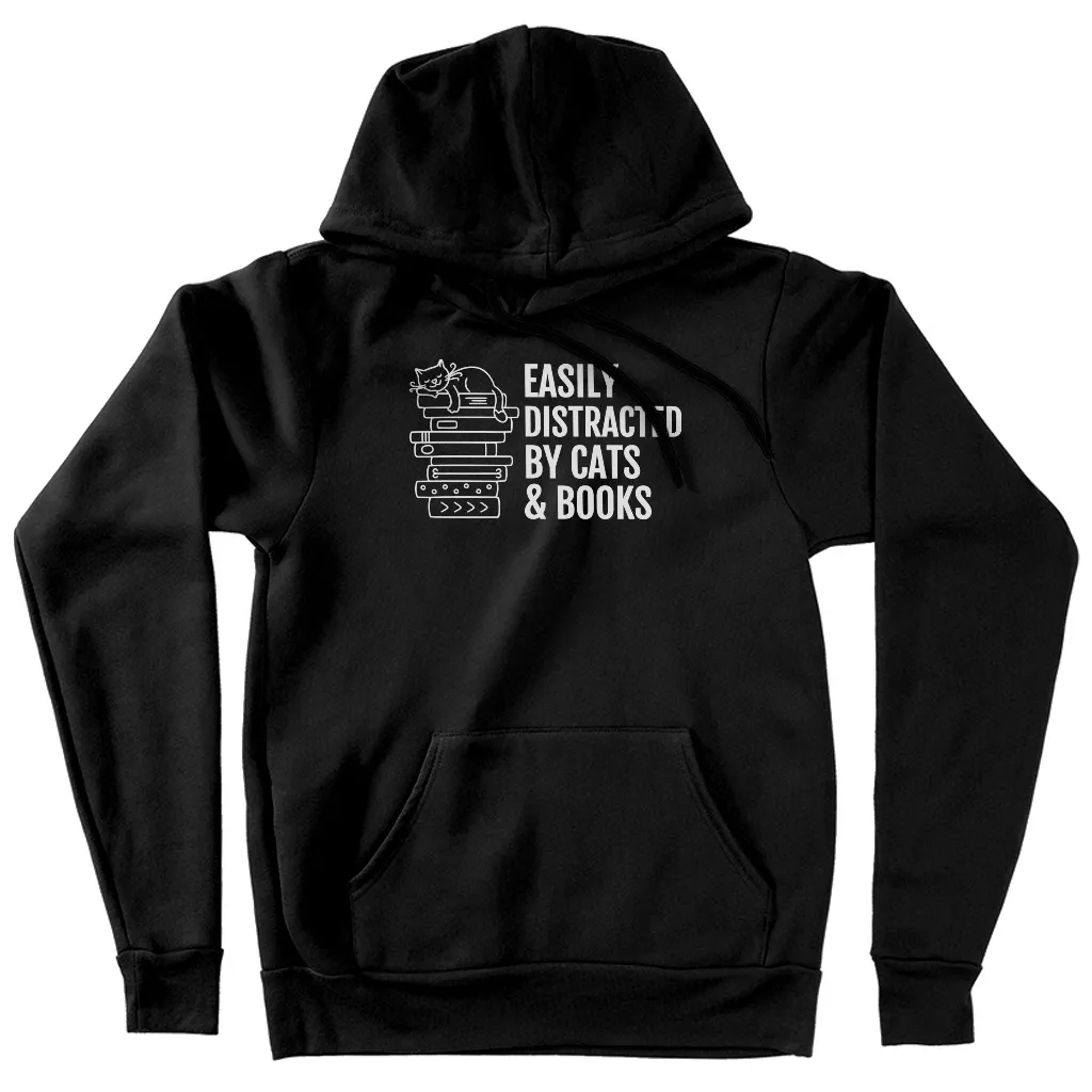 Easily Distracted By Cats And Books Hoodie – Cats and Books Hooded Sweatshirt – Book Lover Unisex Hoodie