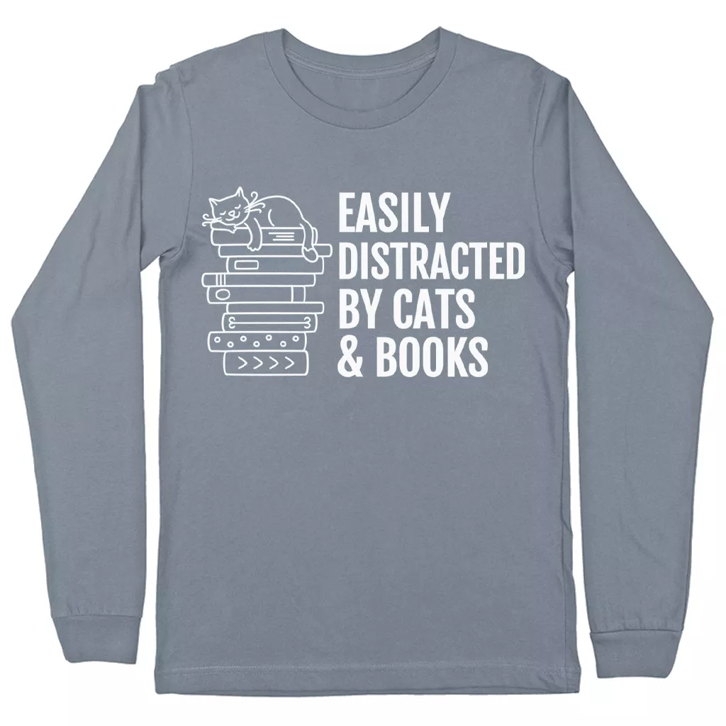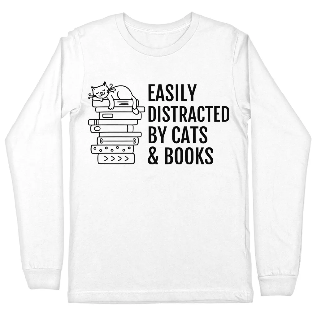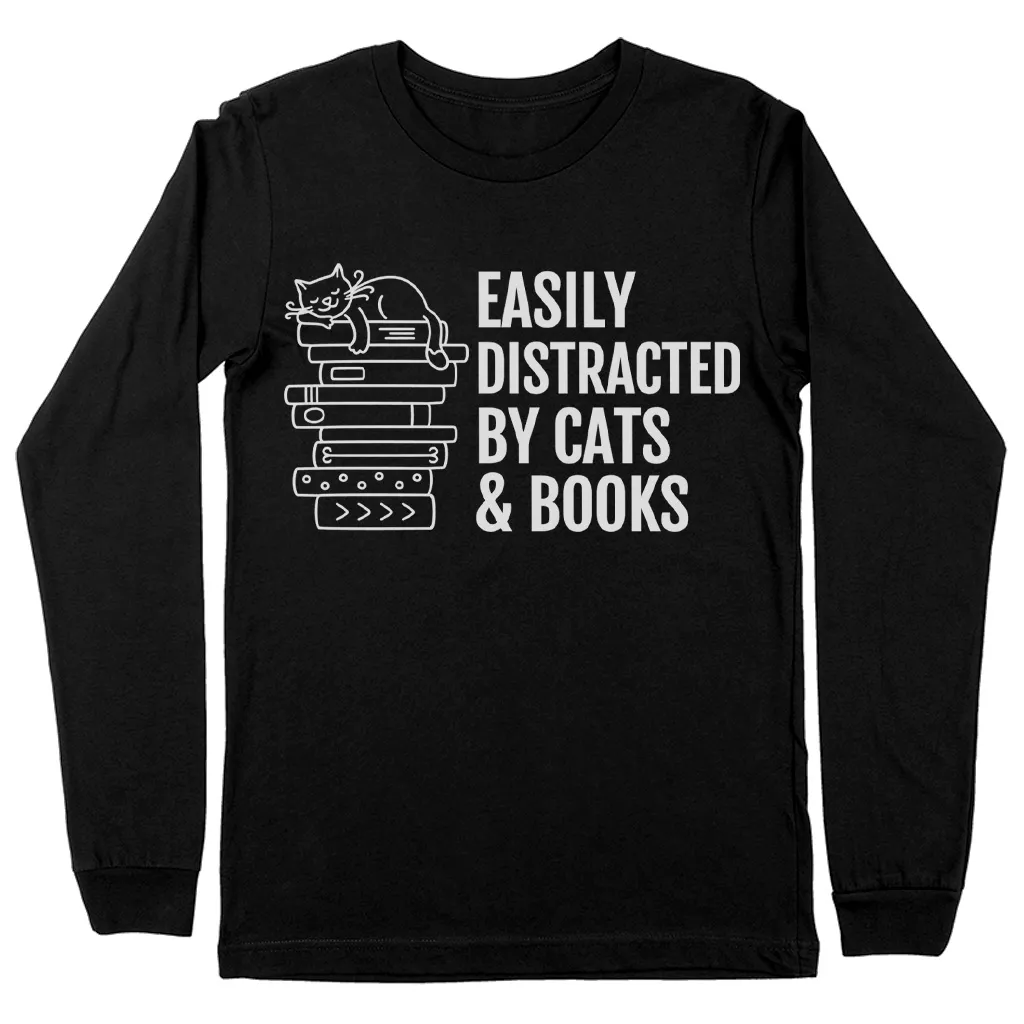 Easily Distracted By Cats And Books Long Sleeve T-Shirt