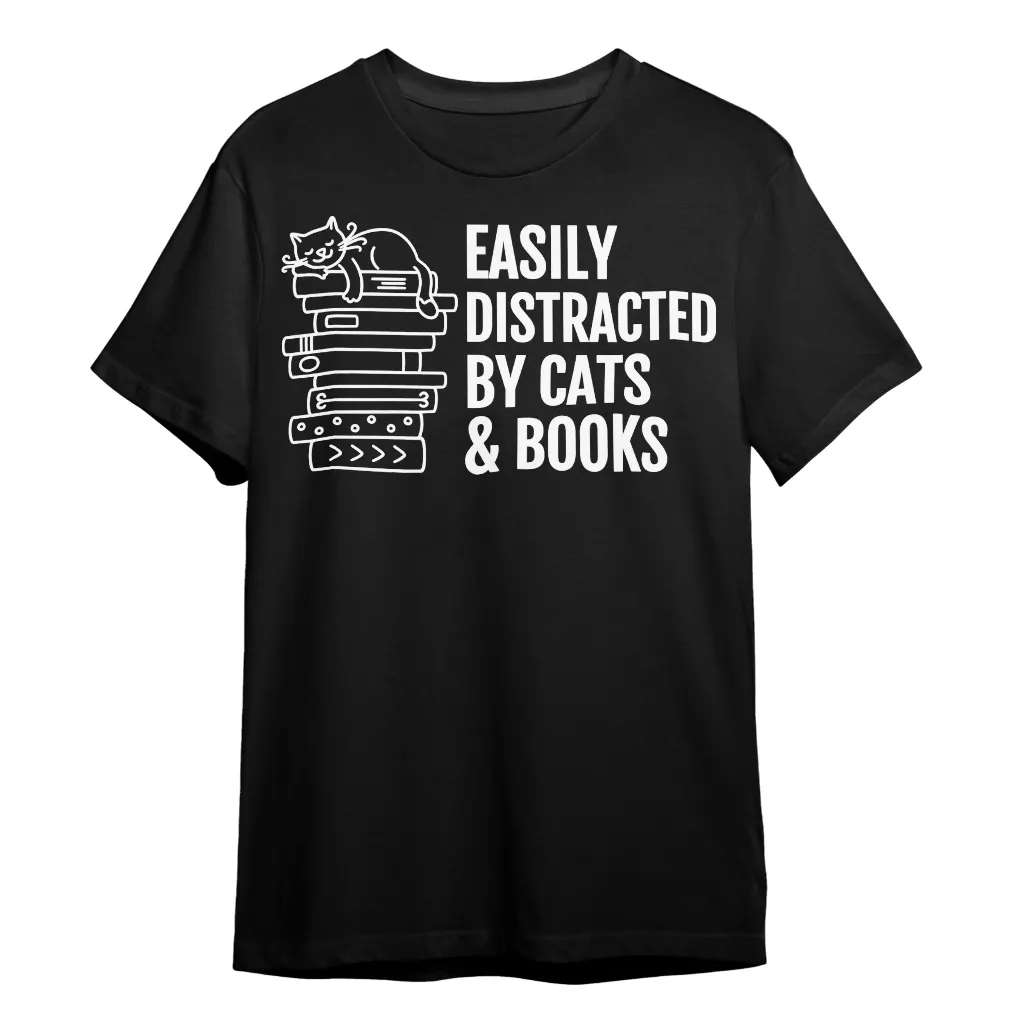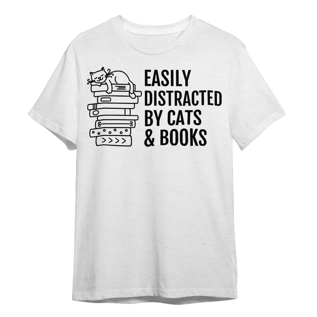 Easily Distracted By Cats And Books T-Shirt