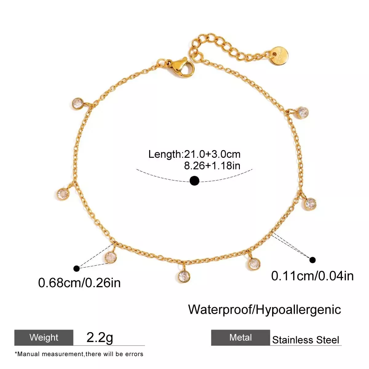 Elegant 18K Gold-Plated Waterproof Zircon Anklet for Daily Wear