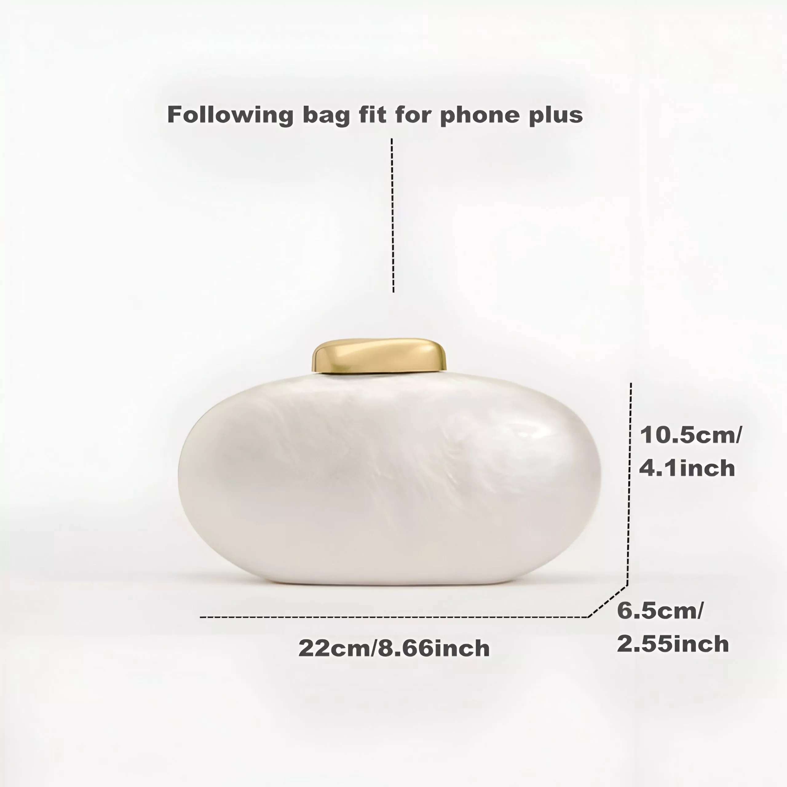 Elegant Ivory Pearl Egg Shape Acrylic Clutch Bag for Weddings & Evening Parties