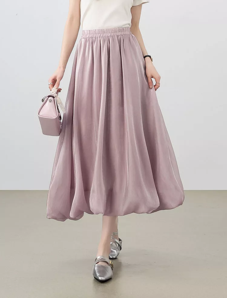 If you’re looking for a wardrobe piece that speaks quiet luxury and makes dressing up feel effortless, this skirt is a must-have. Its flowy structure flatters every movement, making you feel feminine and free. Style it with a tucked-in blouse and heels for a graceful office look, or pair it with a satin cami for a night out. Either way, this pearlescent A-line skirt is sure to turn heads and make you feel your most radiant self.